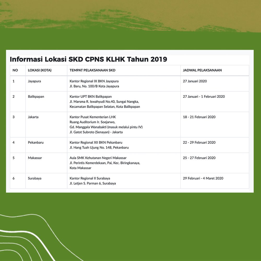 Kementerian Lhk On Twitter Sobathijau Pejuang Cpns Klhk Pelaksanaan Seleksi Kompetensi Dasar Skd Cpns Ta 2019 Akan Berlangsung 27 Januari 4 Maret 2020 Dengan Jadwal Pelaksanaan Yang Berbeda Di Setiap Lokasi Semangat